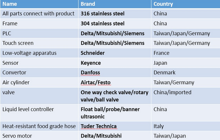 1. Materiał wszystkich części, przez które przepływa produkt, można wyposażyć zgodnie z charakterem produktu, dzięki czemu idealnie nadają się do wypełnienia większości produktów silnie korozyjnych.