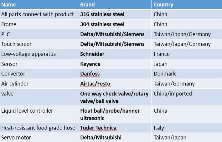 2. Wykonane są z pneumatycznych elementów Festo z Niemiec i komponentów elektrycznych MITSUBISHI z Japonii.